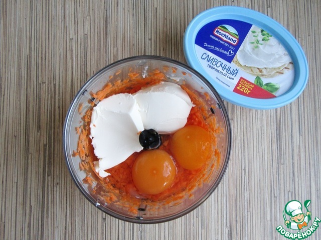 Добавить яйца и творожный сыр (у меня ТМ Хохланд), измельчить.