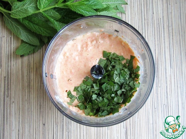 Добавить мелко нарезанные листики мяты, перемешать.