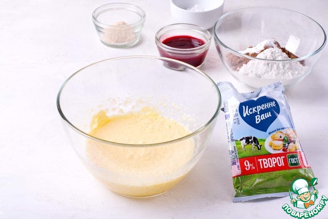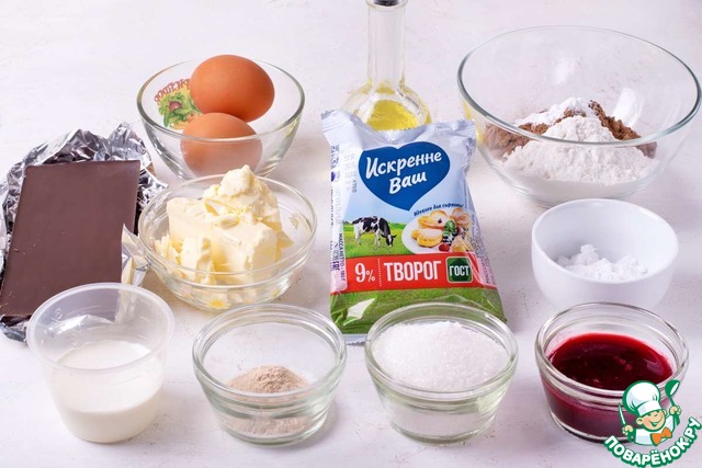 Ингредиенты для «Шоколадный кекс с творожно-ягодной начинкой»: