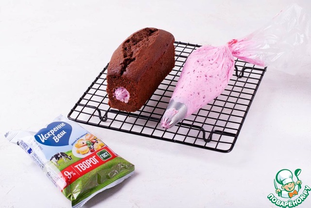 Рецепт «Шоколадный кекс с творожно-ягодной начинкой»: