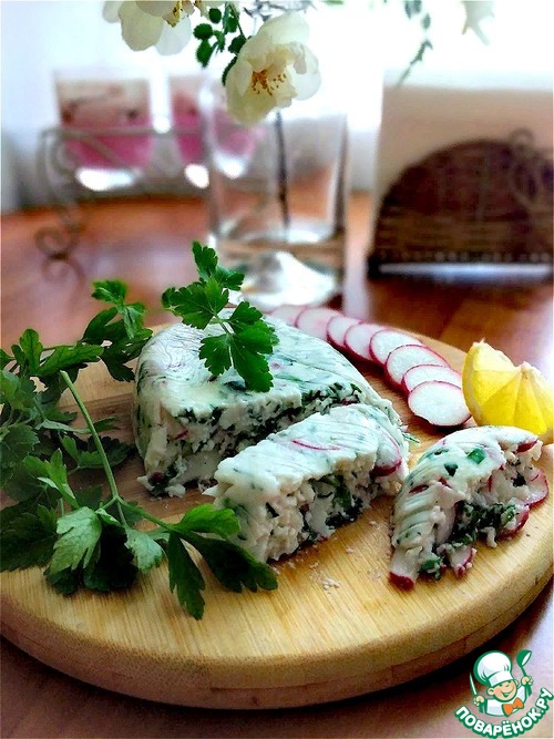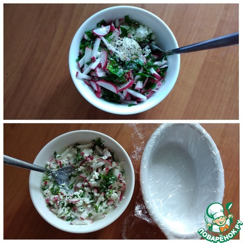 Сейчас идёт сезон редиски и зелени. Готовим террин с этими продуктами и с творогом. Много витаминов, много микроэлементов -МНОГО пользы!