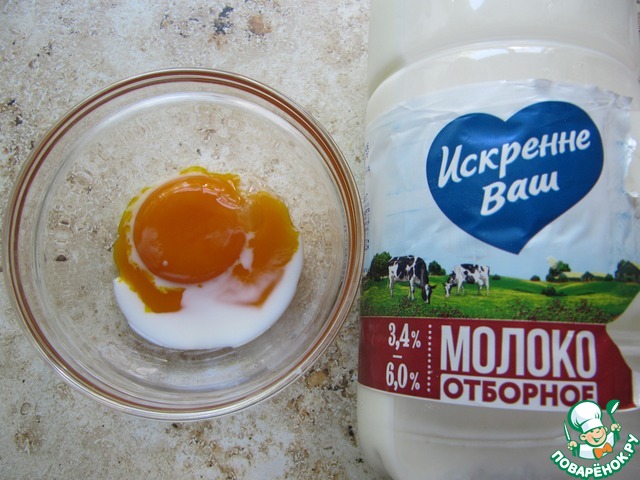 Для смазывания желток куриного яйца смешать с 1-2 ч. л. молока, или сливок, или воды. Использую молоко ТМ "Искренне Ваш". Смазать пирог смесью, нанести рисунок вилкой по своему усмотрению. Выпекать в предварительно разогретой до 180 С духовке примерно 30-40 минут до готовности. Слегка охладить пирог и нарезать на порционные кусочки. Пирог хорош в теплом виде с молоком, а в холодном - с чаем или кофе!