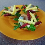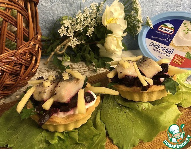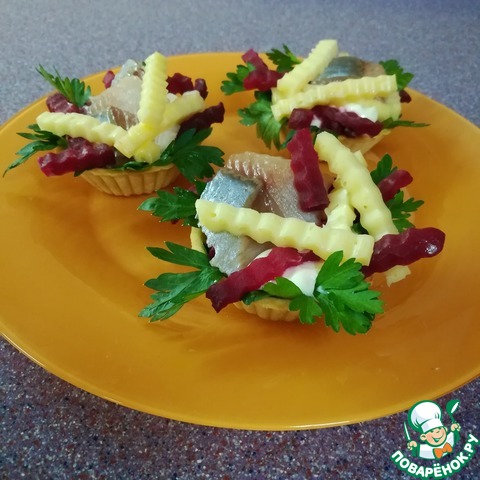 Рецепт «Тарталетки с сыром, свеклой и сельдью»: