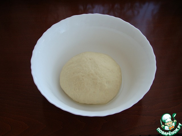 Тесто получается мягким и не липнущим к рукам. Тесто округлить и поместить в смазанную растительным маслом миску. Накрыть салфеткой или пленкой и поставить в теплое место для подъема.