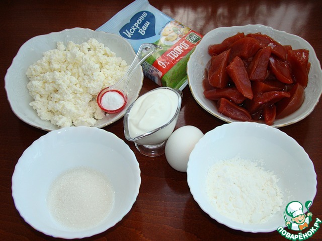 Ингредиенты для «Ватрушка с творогом и айвовым вареньем»: