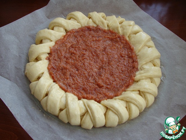 Рецепт «Ватрушка с творогом и айвовым вареньем»: