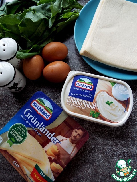 Ингредиенты для «Слоёные "завитушки" с сыром и шпинатом»: