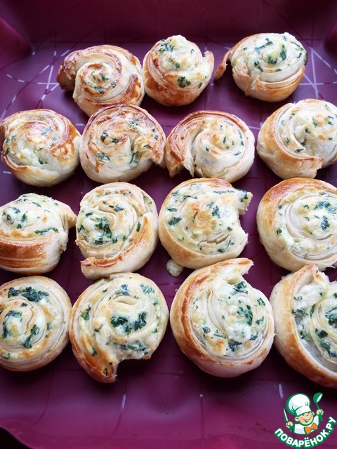 Рецепт «Слоёные "завитушки" с сыром и шпинатом»: