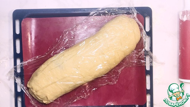 После чего рулет накрываем пищевой пленкой чтобы он поднялся. -