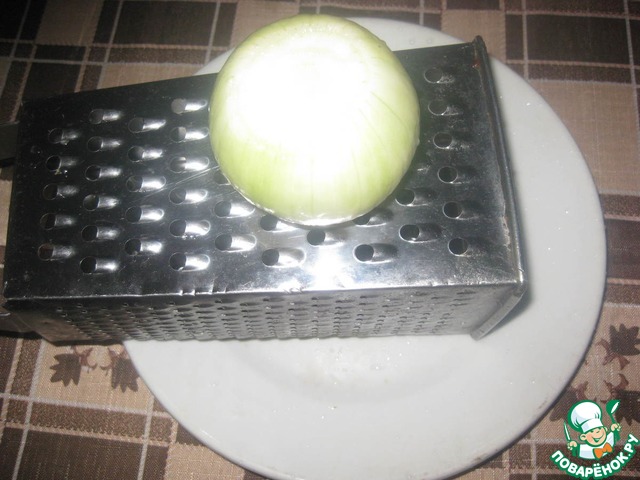 Лук надо почистить и натереть на крупной терке. Можно, конечно и блендером пробить, но его же потом мыть надо...)))
