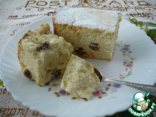 Посыпать запеканку сверху сахарной пудрой. Пышная, воздушная, вкусная, как в тёплом виде, так и в холодном. Можно есть её со сметаной, вареньем, мёдом или сгущёнкой. Зовём семью пить чай.