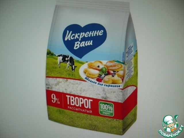 - Творог (9 % ТМ "Искренне Ваш") — 600 г