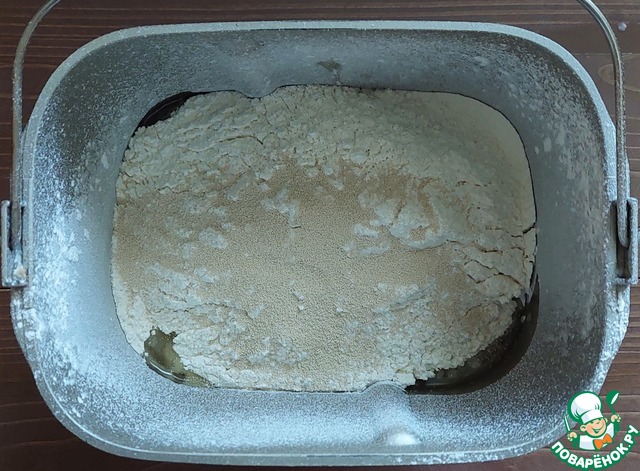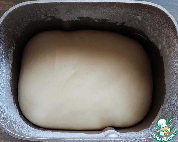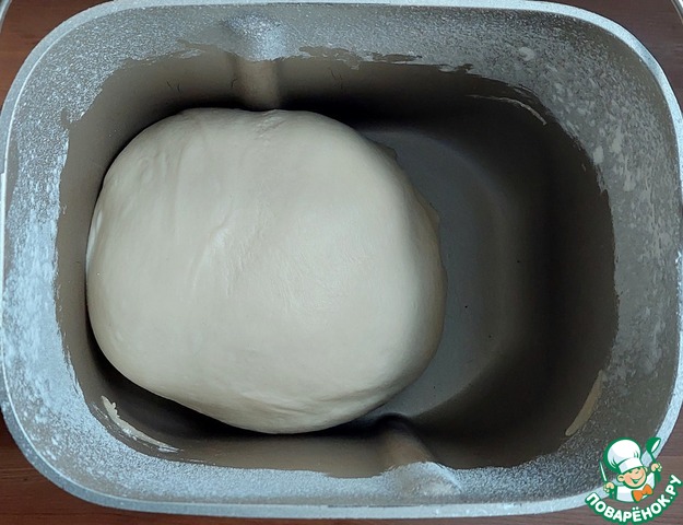 Замесить тесто. Тесто накрыть полотенцем или пищевой пленкой и оставить на 40 мин. в теплом месте для увеличения в объёме. Я оставляю в хлебопечке.
