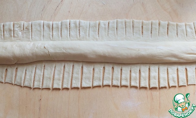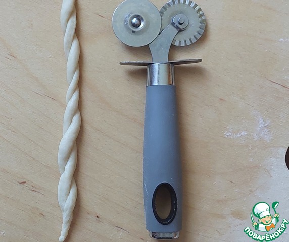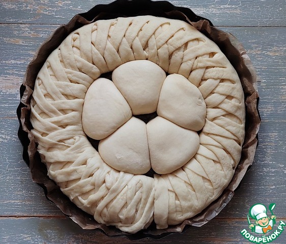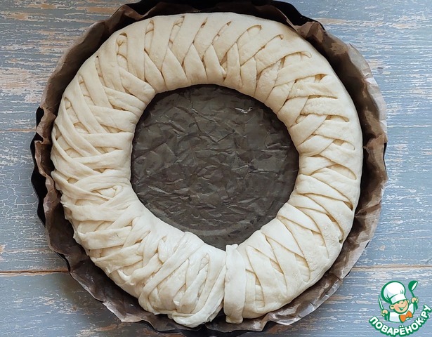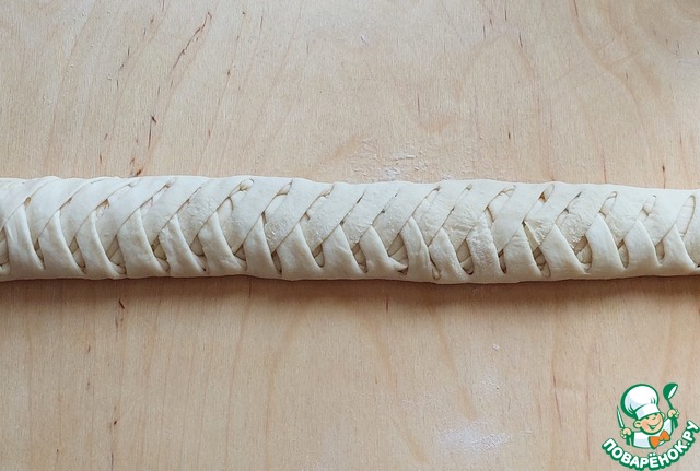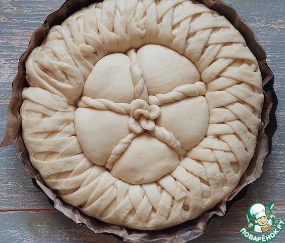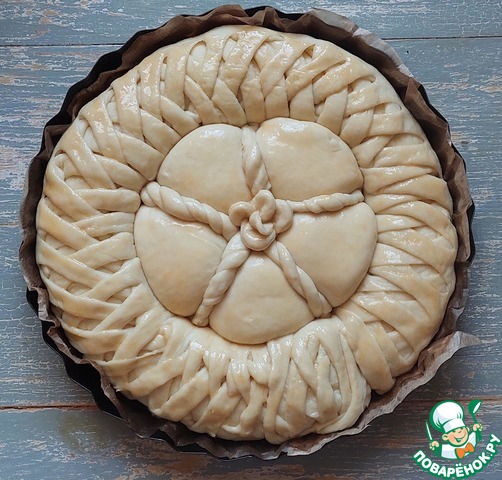 Украсить ими пирог. После формирования жгутиков у меня остался маленький кусочек теста, из которого я сделала розочку и поместила в цент пирога.