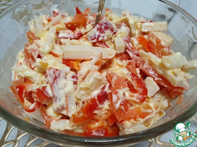 6. В миске смешать все продукты, посолить по вкусу, заправить майонезом, перемешать.