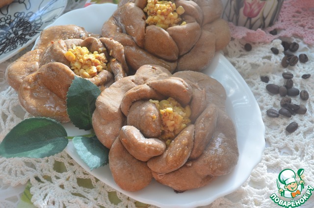 Взбиваем размягченное сливочное масло с сахаром, затем добавляем куриные яйца. Всыпаем какао порошок, муку с разрыхлителем. Вымешиваем тесто (убираем его в холодильник на 30 мин)