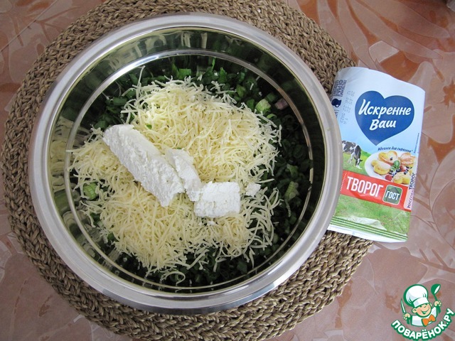 Ингредиенты для «Сырно-творожные слойки с зеленым луком»: