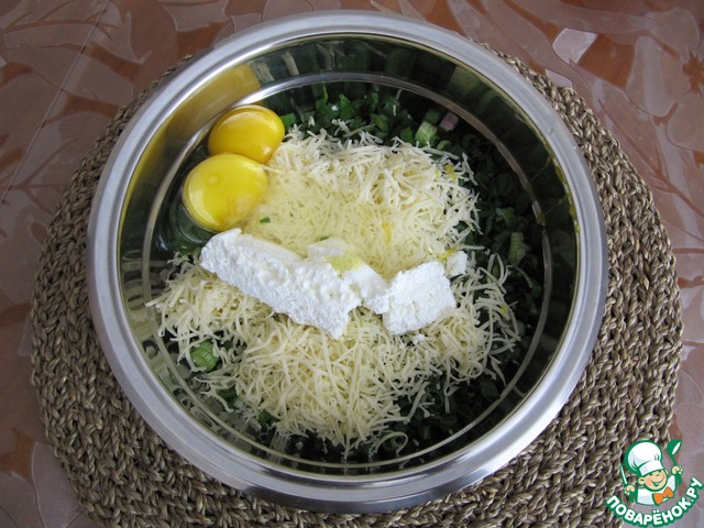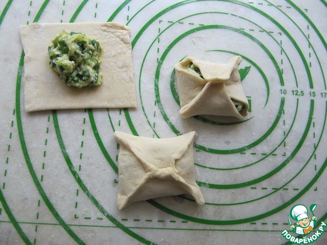 Рецепт «Сырно-творожные слойки с зеленым луком»:
