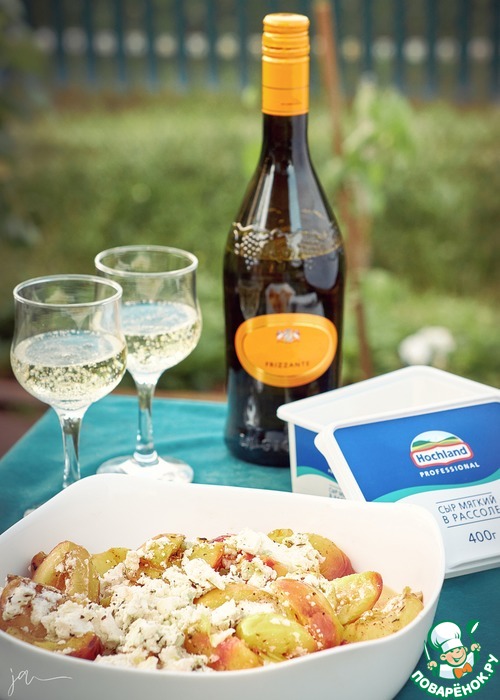 Пикантная закуска, идеальная для летнего вечера, когда хочется чего-то легкого и горячего. Сладость нектаринов, солоноватость феты, острота чеснока и ароматы трав... Мммм, устоять невозможно...