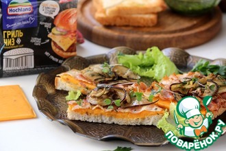 Если у Вас планируется романтический пикник, советую к игристому приготовить такие пикантные тосты. Приготовить их можно и заранее, но лучше, конечно, непосредственно на природе, благо готовятся они на раз-два.