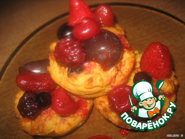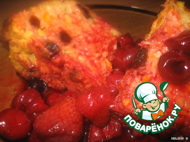 СОВЕТ:Очень вкусно подавать наш кекс с ягодами (у меня размороженное "Ассорти"-ягодно-фруктовое) с соком!!