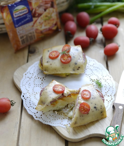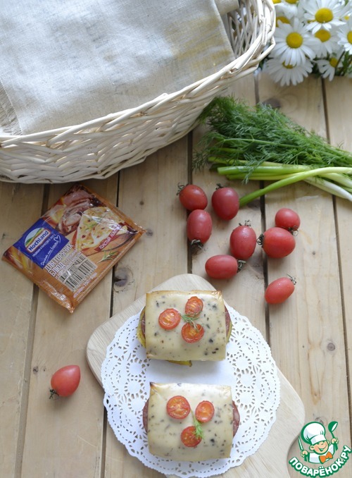 - Сыр плавленый ((ломтики) сыр плавленый ломтевой для горячих блюд ТМ Hochland) — 4 шт