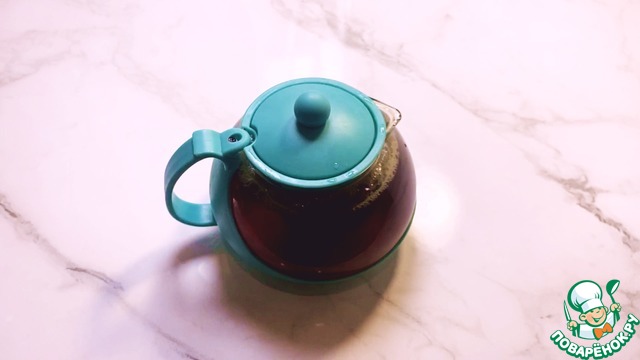 Первым делом в заварник отправляем чай, заливаем его кипятком и оставляем настаиваться.