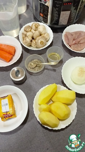 Ингредиенты для «Сырный крем-суп с грибами»: