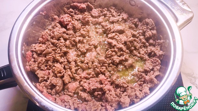 Первым делом фарш обжариваем на оливковом масле до полной готовности.