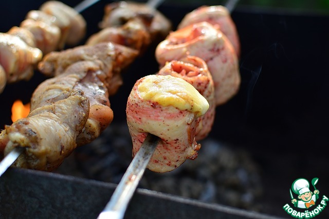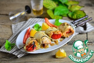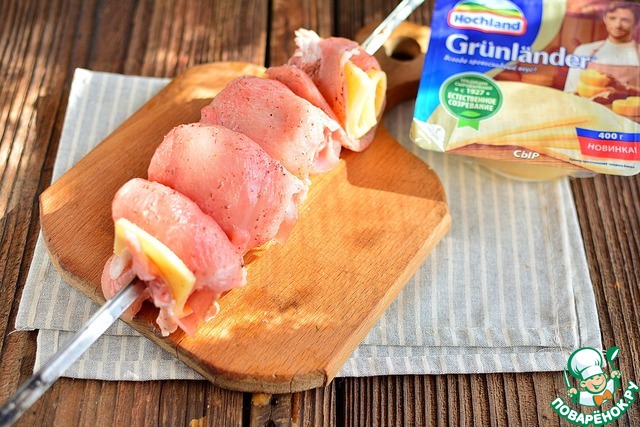 Аналогично сформировать другие рулеты, нанизать на шампур.