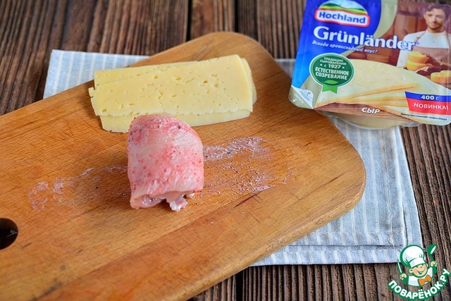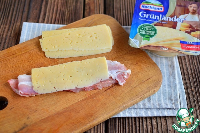 Ингредиенты для «Куриные рулетики с сыром и беконом гриль»: