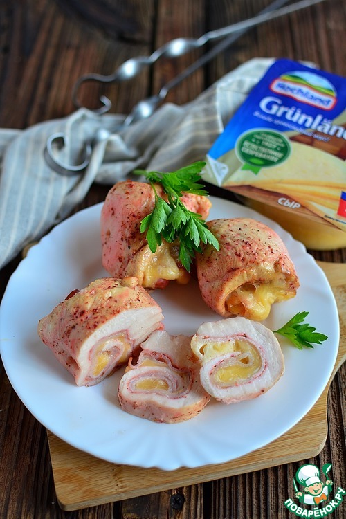 Рецепт «Куриные рулетики с сыром и беконом гриль»:
