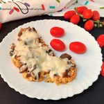 Готовила на сковороде, так уж сложились обстоятельства. Сначала обжарила с двух сторон на сильном нагреве, потом довела до готовности с добавлением воды. Приправила; грибы, сыр и под крышку пока сыр не расплавился.