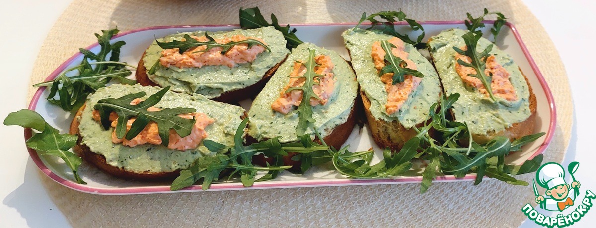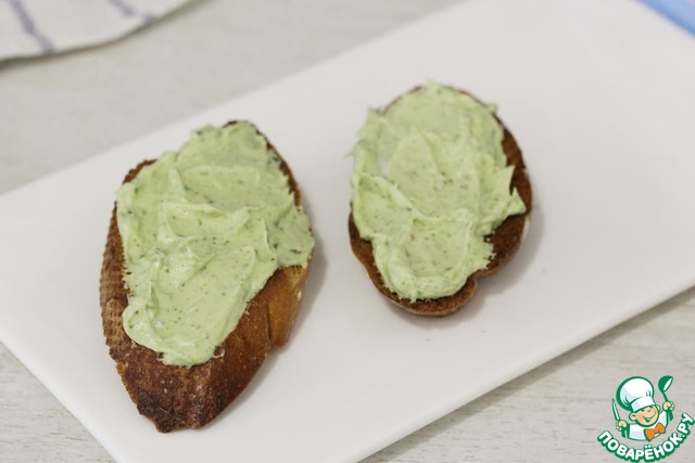Рецепт «Кростини с сырно-авокадным дипом»: