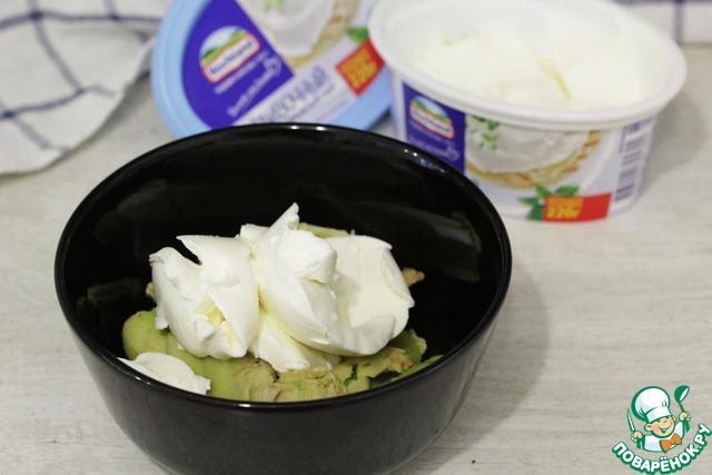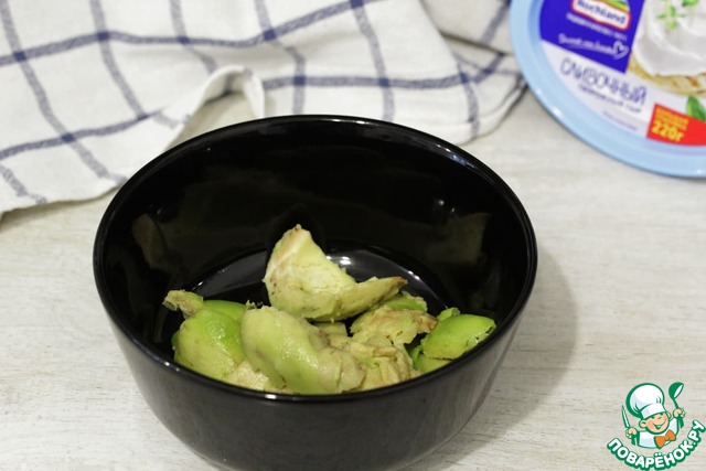 Авокадо очистить, выложить мякоть в глубокую миску.