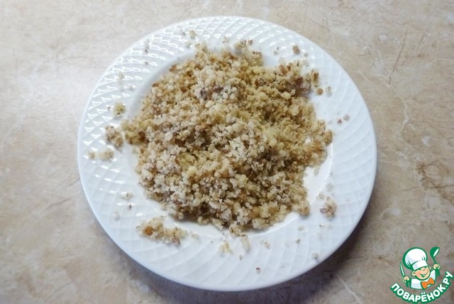 Грецкие орехи измельчить в мелкую крошку.
