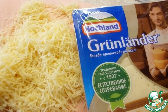 Натереть на мелкой терке сыр Грюнландер ТМ Хохланд.
