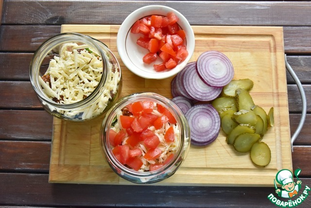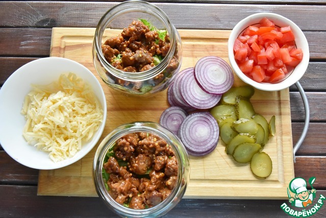 Обычно чизбургер, относящийся к фаст-фуду, харрактеризуют как "нездоровую еду". А ведь именно ингредиенты определяют полезность блюда. В качестве белковой составляющей можно использовать говяжий фарш или колбаски. Добавьте больше овощей и крутоны из цельнозернового хлеба. Предлагаю вашему вниманию разобранный чизбургер салат в банке. Который удобно взять на природу или прогулку. Ваше лицо и руки останутся чистыми, а настроение сытым!