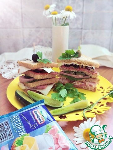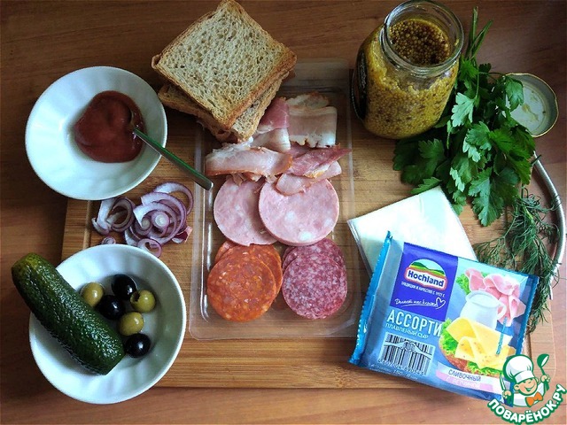 - Сыр плавленый (пластинами для бутербродов сливочный и с ветчиной) — 2 ломт.