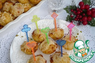 Вкусные картофельно- сырно- луковые пончики хороши с любым соусом.