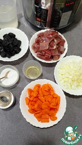 Ингредиенты для «Говядина с черносливом и овощами»: