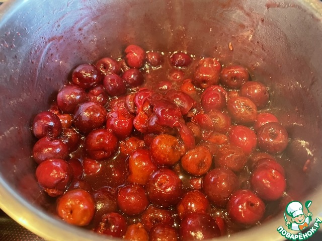 Вишню, сахар, крахмал и корицу перемешайте. Поставьте на средний огонь и постоянно помешивая, варите до загустения.