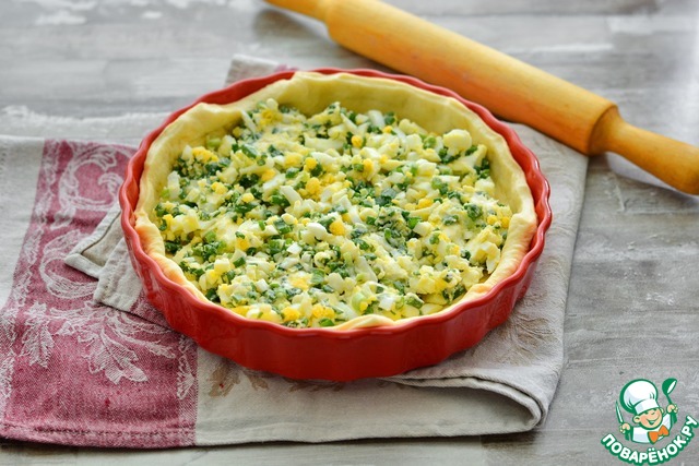 Рецепт «Пирог с луком, яйцом, творожным сыром»: