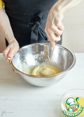 Взбить яйца и желток с сахаром и солью.