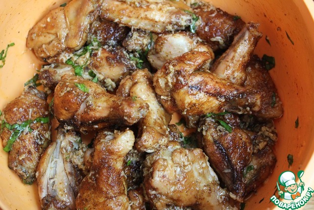 Рецепт «Куриные крылышки в сырно-чесночной заливке»: