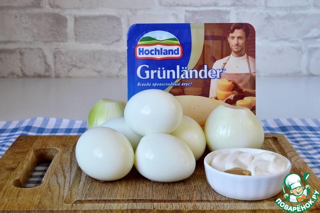 Подготовить необходимые ингредиенты. Яйца сварить вкрутую, остудить и очистить.