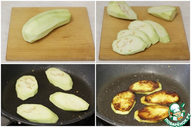 • Баклажан очистить от кожицы и нарезать на кружочки.