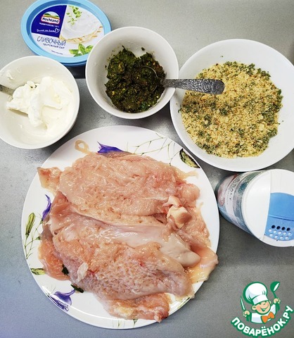 Ингредиенты для «Куриные палочки с сыром и песто»: