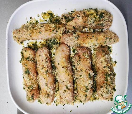 Куриные палочки с сыром и песто