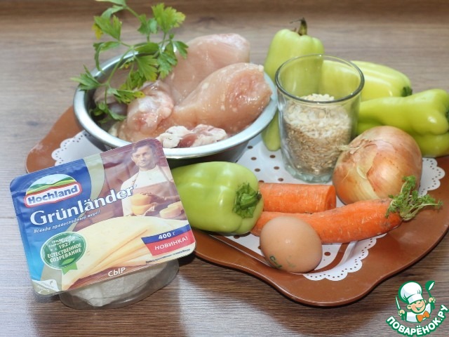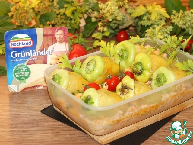 Ингредиенты для «Перец, фаршированный мясом, под сырным соусом»: